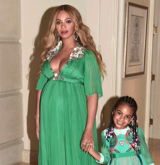Beyoncé, Jay Z, and the twins-to-be made a family appearance at the March 3 Hollywood premiere of Disney’s live-action Beauty and the Beast. But it was little Blue Ivy who stole the show in a Gucci dress retailing for $2,100.
